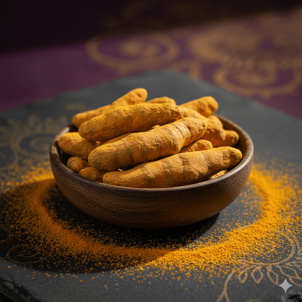 Sourced from Salem & Alleppey. High Curcumin content (3-5%) with a distinct golden-yellow hue.