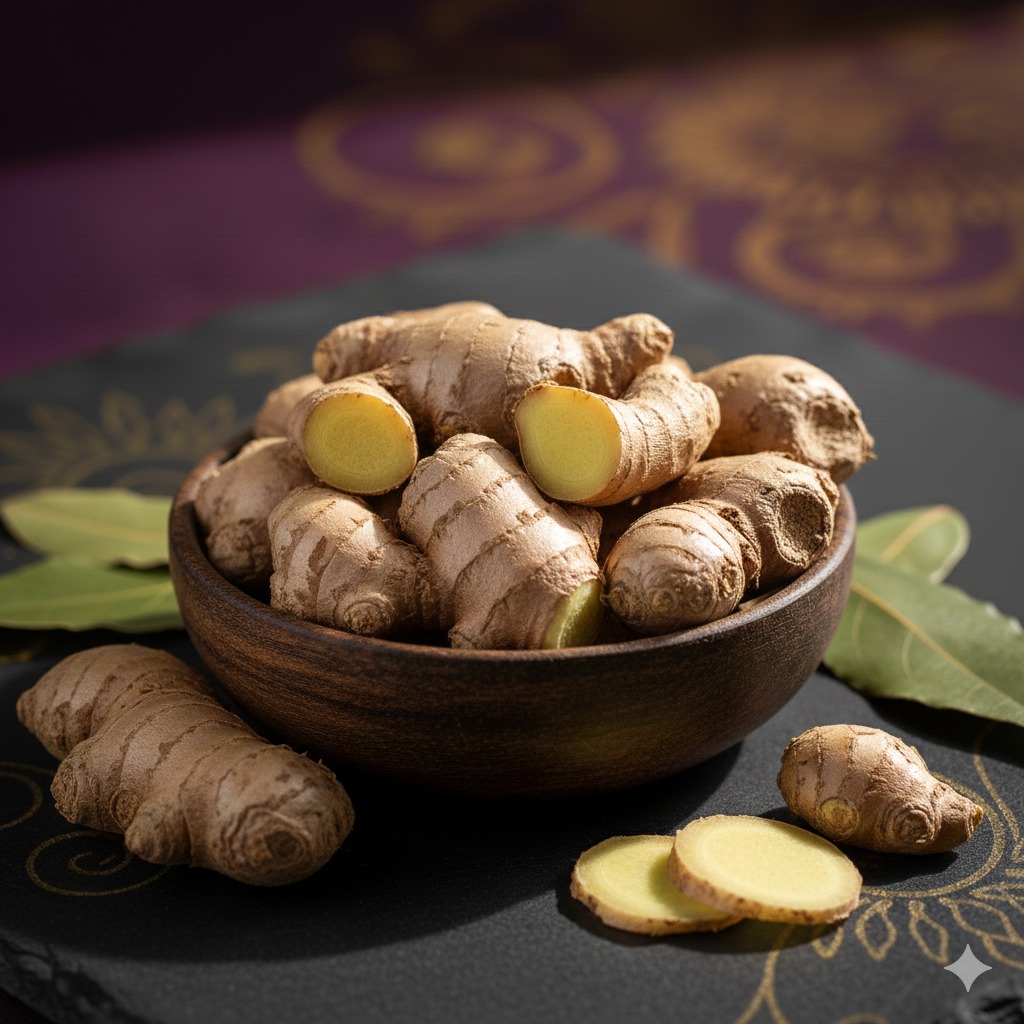 Cochin Ginger (NUGC/NGC). Renowned for its lemon-like aroma, low fiber content, and high pungency.
