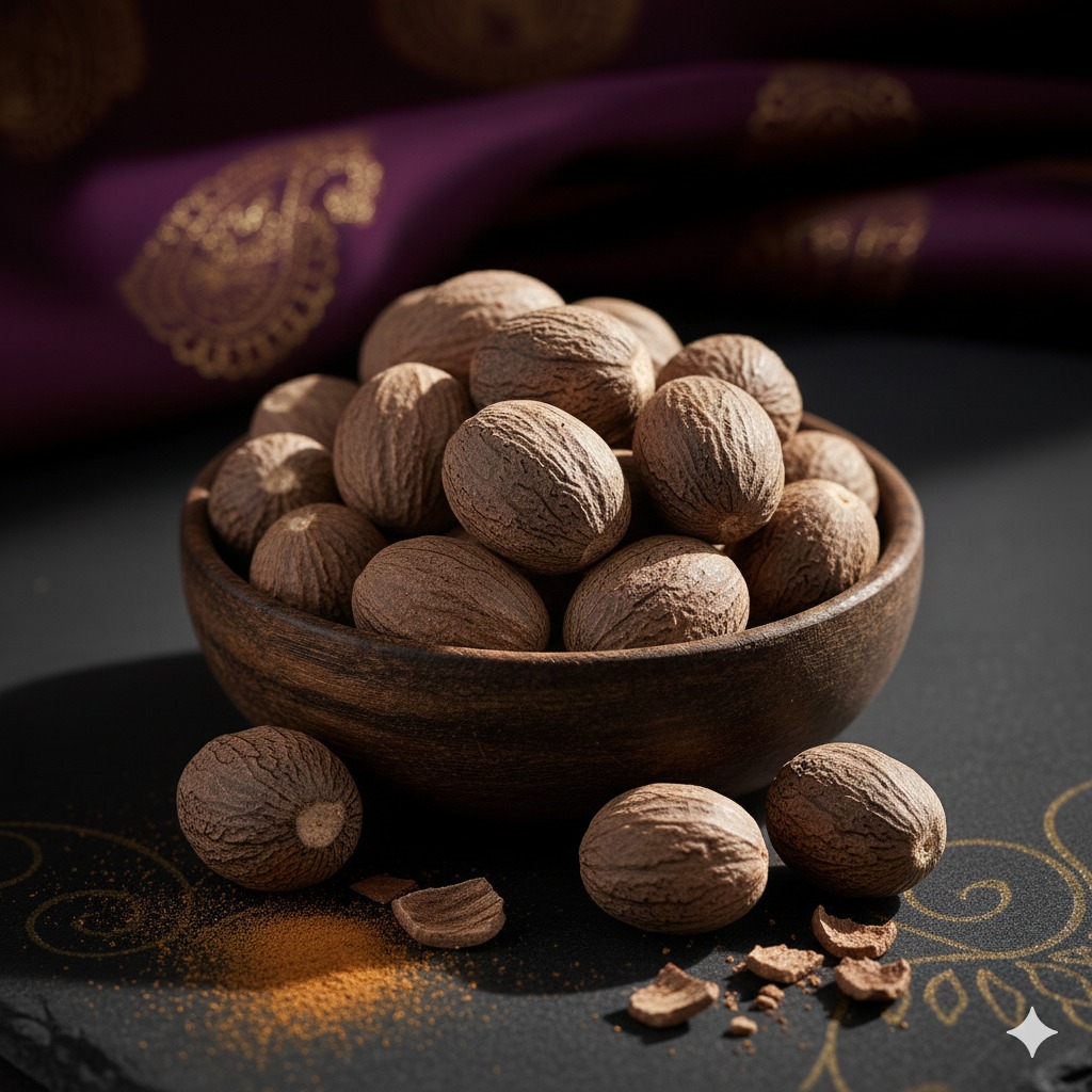 Large, oil-rich nuts sourced from Kerala riverbeds. High myristicin content for industrial extraction.